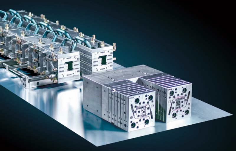 定型模水氣的精密控制,幾何梯度成型尺寸設(shè)計(jì),有效保證了高速擠出生產(chǎn)的穩(wěn)定性;模頭平直段以及膨脹系數(shù)的優(yōu)化取值,結(jié)合成型軟件的模擬分析,為高速擠出提供動(dòng)力;主型材通過Y-block分流體技術(shù)可以實(shí)現(xiàn)雙腔高速擠出,有效的提高產(chǎn)量和效率。